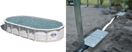 Baseny w kształcie owalnym, o których mówiliśmy do tej pory, wymagają instalacji bocznych podpórek do konstrukcji, które przypominają nóżki, umieszczonych na dłuższym boku, żeby zwiększyć solidność konstrukcji. Baseny Gre stworzyły swój wyłączny system, który oferuje baseny bez podpórek; takie modele możemy znaleźć w serii Haiti. Ten system wymaga wykopania dołu, dość płytkiego; ale rezultat jest wart wysiłku, ponieważ zmniejsza to przestrzeń zajmowaną przez instalację i poprawia jej estetykę. Seria Varadero jest oparta na tym samym systemie; te modele są wyjątkowe ponieważ mają kształt ósemki, co sprawia że są bardzo oryginalne.